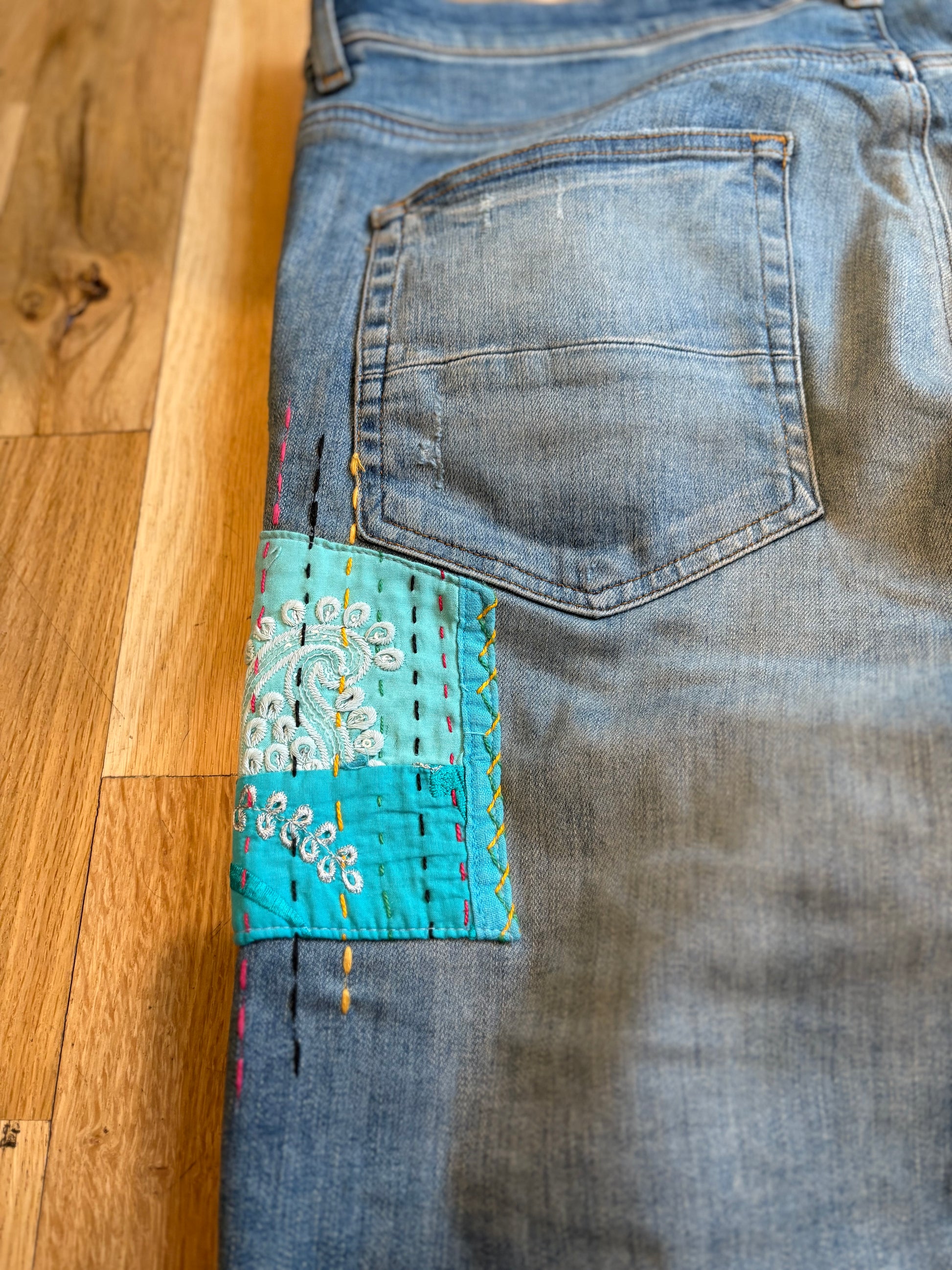 Amiri Jeans Light Wash Patchwork Size 38